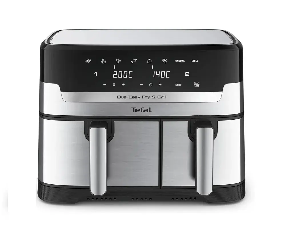 وقتش رسیده سه مدل را به‌عنوان بهترین هواپز دوقلو معرفی می‌کنیم که بین خریداران محبوبیت زیادی دارند. اگر دنبال یک سرخ‌کن بدون روغن با ظرفیت بالا، امکانات پیشرفته و طراحی کاربردی هستید، مدل‌های تفال EY905D40، کنوود HFM75 و فیلیپس NA350/00 می‌توانند انتخاب‌های مناسبی باشند. در ادامه هرکدام از این محصولات را از نظر طراحی، عملکرد، ظرفیت و امکانات بررسی کرده‌ایم تا راحت‌تر تصمیم بگیرید.