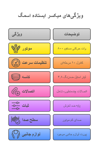 این مجموعه مزایا، همزن کاسه‌دار اسمگ را به ابزاری کامل و قابل اعتماد برای حرفه‌ای‌ها و علاقه‌مندان جدی آشپزی و شیرینی‌پزی تبدیل کرده است.