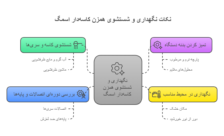 برای افزایش طول عمر و حفظ عملکرد بهینه همزن کاسه‌دار اسمگ، رعایت نکات زیر در نگهداری و شستشو ضروری است