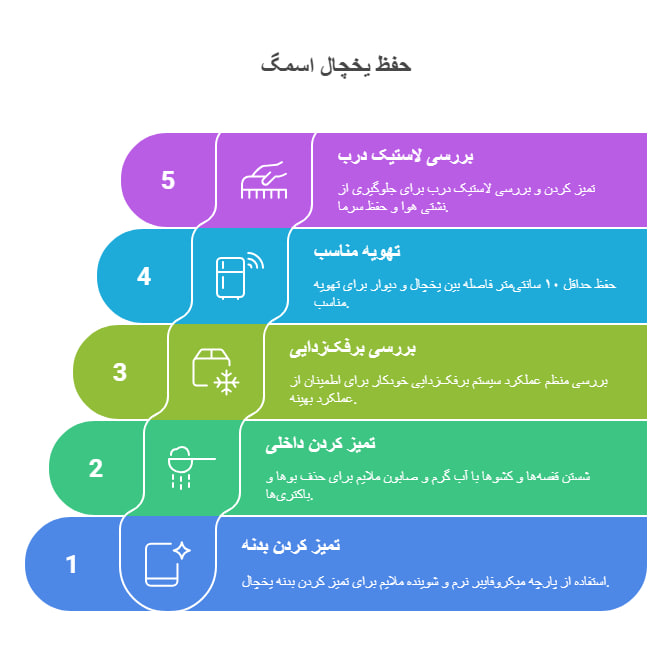 رعایت این نکات ساده باعث می‌شود یخچال اسمگ شما سال‌ها با کارایی بالا و ظاهری درخشان همراه باشد و از هزینه‌های اضافی تعمیر و نگهداری جلوگیری شود.