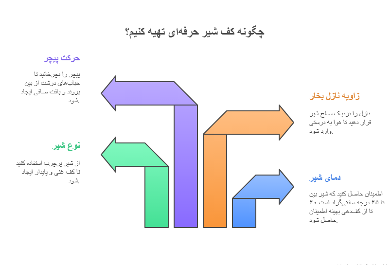 - شیر پرچرب انتخاب کنید: شیر کمچرب کف مناسبی نمیدهد.