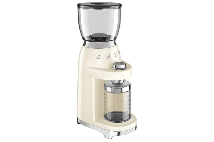 آسیاب قهوه اسمگ رنگ کرم با ابعاد 25×15×46 سانتیمتر و وزن 3.1 کیلوگرم، فضای کمی اشغال میکند. بدنه استیل با رنگ کرم براق، ظاهری رترو و مقاوم در برابر خطوخش ایجاد میکند. خطوط نرم و دستگیرههای کرومی، حس نوستالژی را با فناوری مدرن پیوند میدهند. این آسیاب قهوه با طراحی زیبا، مانند یک جواهر آرام، آشپزخانه را به فضایی شیک تبدیل میکند. طراحی ارگونومیک، جابهجایی و استفاده را آسان میسازد.