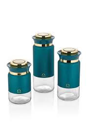 ست بانکه سهتکه نِوا (Neva) با طراحی مدرن و رنگ خاص فیروزهای–طلایی، یکی از زیباترین مجموعههای نگهداری مواد غذایی است که جلوهای خاص به آشپزخانه میبخشد. این مجموعه با ترکیب شیشه شفاف و بدنهی فلزی رنگی، ضمن زیبایی، عملکردی فوقالعاده در نگهداری تازه و منظم مواد خشک دارد.