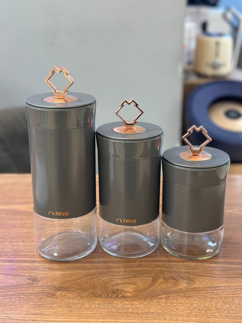 بانکه پمپی سه سایز نوا سفید یک ست سهتکه از برند Neva است که برای نگهداری مواد غذایی خشک مانند حبوبات، قند، شکر، چای و قهوه استفاده میشود. این ست شامل سه بانکه در اندازههای مختلف است که معمولاً حدود 26، 21 و 17 سانتیمتر ارتفاع دارند و ظرفیتهای تقریبی آنها 1.4 لیتر، 1.1 لیتر و 0.84 لیتر است.