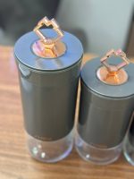 بدنه بانکهها از شیشه مقاوم ساخته شده و درپوشها از جنس فلزی با روکش رنگ سفید طراحی شدهاند. در این مدل، درپوشها به صورت پمپی عمل میکنند، یعنی با فشار دادن قسمت بالای درب، درب باز یا بسته میشود و این طراحی باعث سهولت استفاده و حفظ بهتر عطر و تازگی مواد داخل ظرف میگردد.