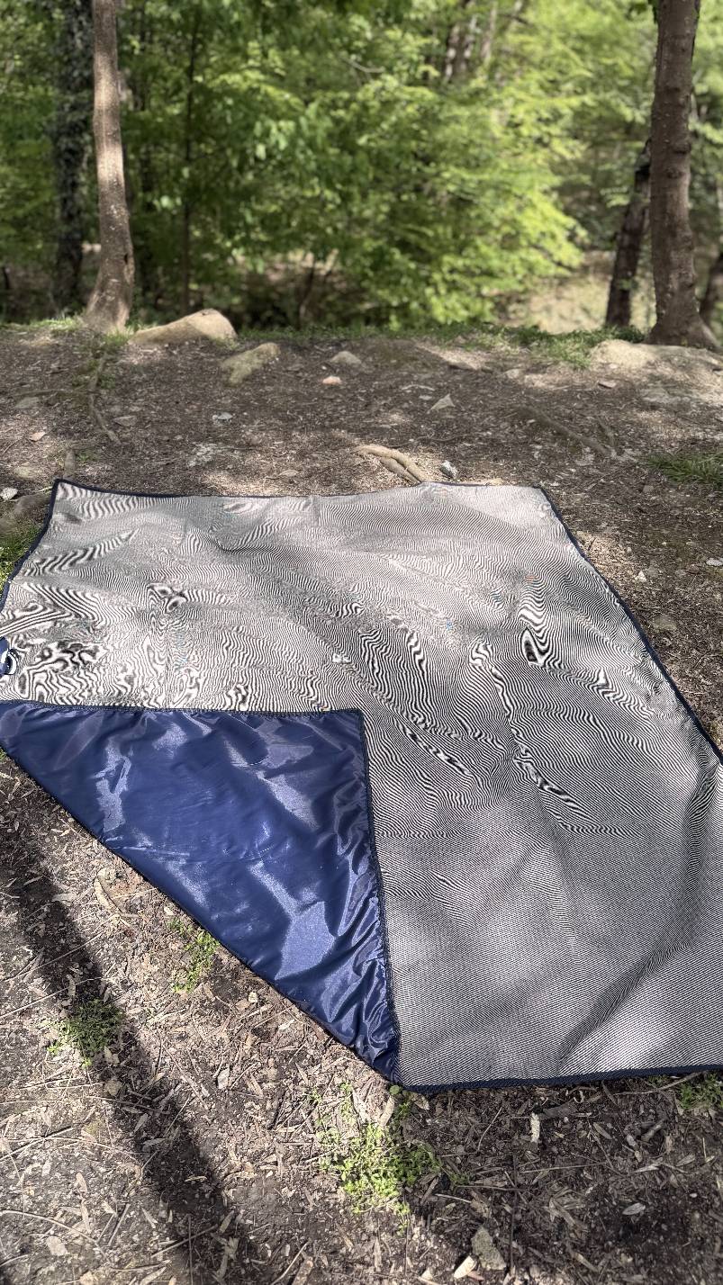 این زیرانداز از دولایه تشکیل شده است،لایه زیرین زیرانداز از جنس پارچه شمعی ضدآب با کیفیت بالا می باشد. این لایه مقاوم، مانع نفوذ رطوبت و آب از سطح زمین به زیرانداز می‌شود، بنابراین می‌توانید آن را روی سطوح مرطوب و چمن نیز استفاده کنید بدون اینکه نگران خیس شدن و آسیب دیدن آن باشید. همچنین جنس ضدآب این زیرانداز از آسیب‌های ناشی از خاک و گل جلوگیری می‌کند.
