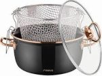- طراحی درب توری: درب فلزی با طراحی توری، امکان تهویه بهتر بخار را فراهم میکند و از پاشش روغن در هنگام سرخ کردن جلوگیری میکند.