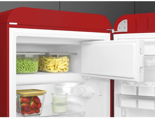 رنگ قرمز همیشه نمادی از انرژی، عشق و هیجان بوده است. یخچال اسمگ قرمز مدل FAB10RRD5 این مفاهیم را با استایل وینتیج و طراحی بیزمان ترکیب میکند. بدنه درخشان و قرمز رنگ آن در کنار دستگیره کرومی، تضادی خیرهکننده ایجاد میکند که یادآور خودروهای کلاسیک و کافههای دهه پنجاه میلادی است. این یخچال رترو قرمز به تنهایی کافی است تا یک آشپزخانه ساده را به فضایی شیک و به یاد ماندنی تبدیل کند و به عنوان یک نقطه کانونی جذاب، تمام نگاهها را به خود معطوف سازد.